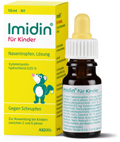 Imidin für Kinder Nasentropfen. Wirkstoff: Xylometazolinhydrochlorid. Anwendungsgebiete: zur Abschwellung der Nasenschleimhaut bei Schnupfen, anfallsweise auftretendem Fließschnupfen (Rhinitis vasomotorica), allergischem Schnupfen (Rhinitis allergica).