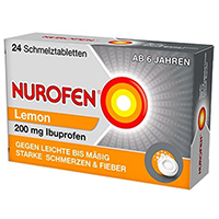 Nurofen 200 mg Schmelztabletten Lemon. Wirkstoff: Ibuprofen. Anwendungsgebiete: zur Linderung von leichten bis mäßig starken Schmerzen wie Kopfschmerzen, Zahnschmerzen und Regelschmerzen und zur Fiebersenkung.