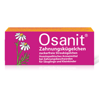Osanit Zahnungskügelchen. Anwendungsgebiete: Die Anwendungsgebiete leiten sich von den homöopathischen Arzneimittelbildern ab. Für dieses Arzneimittel sind folgende Anwendungsgebiete zugelassen: Zahnungsbeschwerden bei Kindern verbunden mit Schmerzzuständen, Zahnungsfieber, Zahnungsdurchfall, reizbaren Verstimmungszuständen, Unruhe und Schlaflosigkeit.