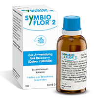 Symbioflor 2 Tropfen, Suspension. Wirkstoff: Escherichia coli-Bakterien. Anwendungsgebiete: zur Regulierung der körpereigenen Abwehrkräfte sowie bei Störungen der Magen-Darmfunktion insbesondere Reizdarm (Colon irritabile).